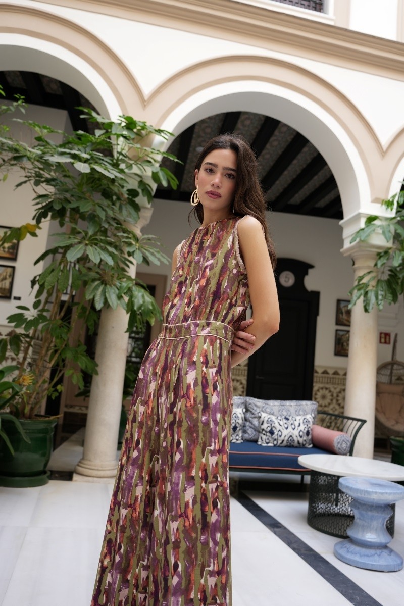 El mono Selva está confeccionado tejido viscosa. Con un escote favorecedor y una silueta estructurada pero cómoda, este mono eleva cualquier look de fiesta gracias a sus acabados de calidad y su presencia imponente.