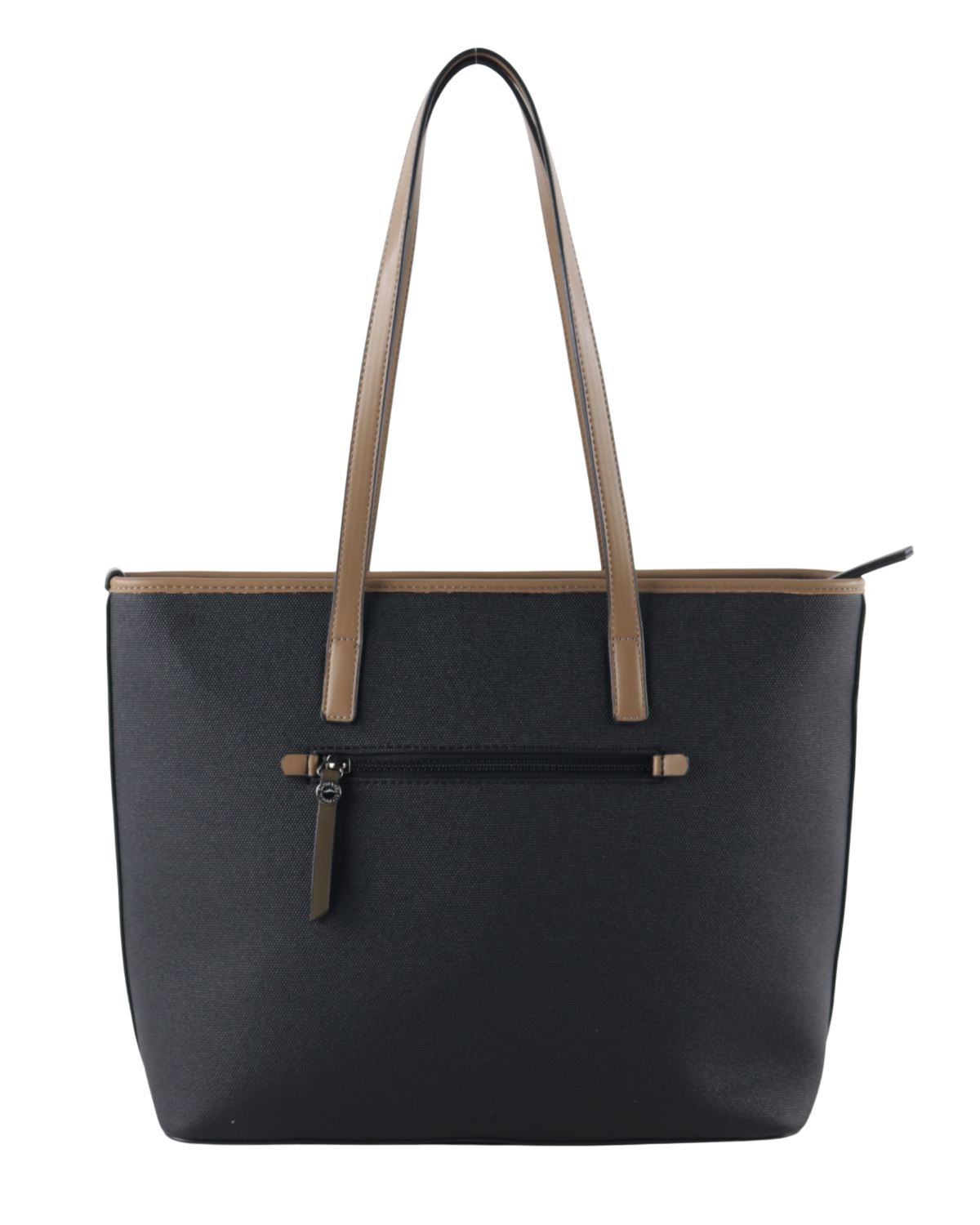 El shopper resulta espacioso y cómodo. Cierre con cremallera para una mayor seguridad. Su interior está forrado con forro personalizado, cuenta con cuatro bolsillos, uno de ellos con cremallera. Dispone de dos bolsillos exteriores en la parte delantera y trasera, ambos con cremallera.